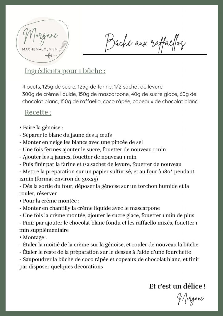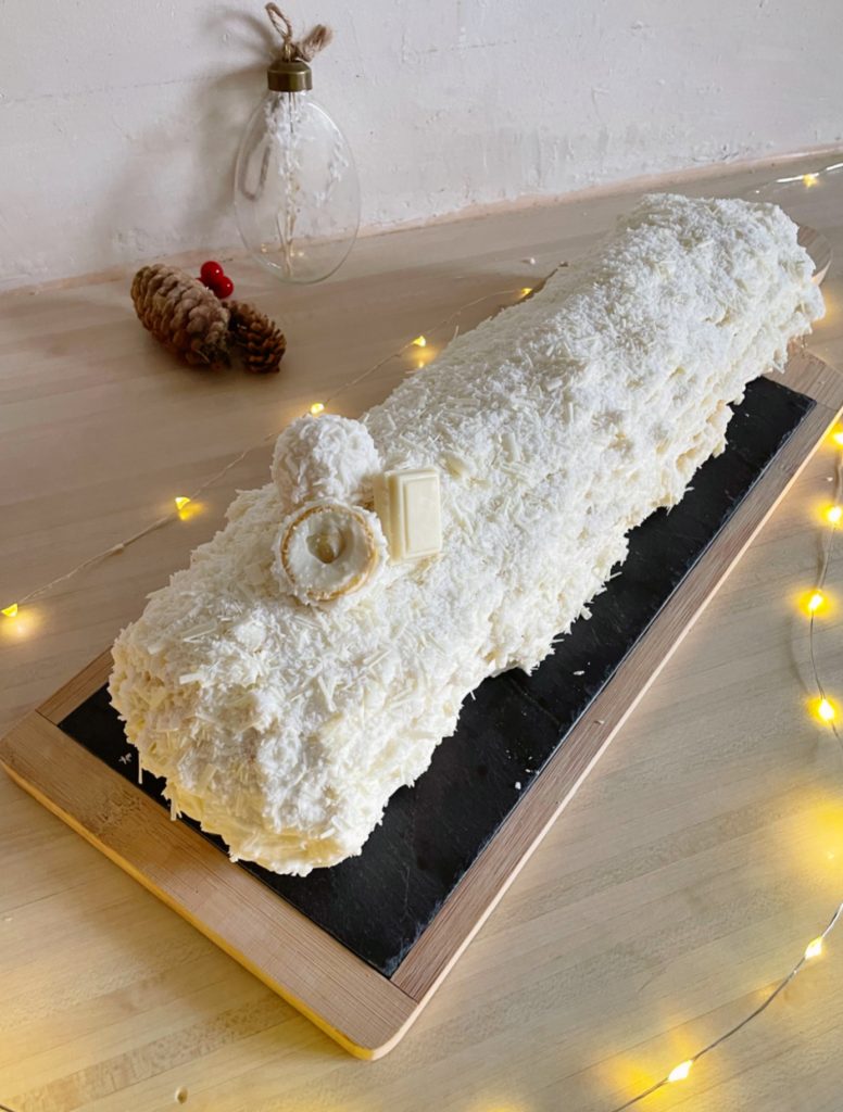 Bûche facile aux raffaellos 🥥 C’est un dessert simple mais par contre tellement bon 🤤 C’est une dose de douceur au goût subtil de coco et chocolat blanc, elle est ultra légère et peu sucrée ✨