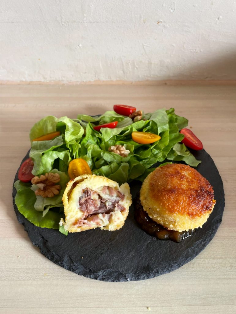 Cromesquis de canard au foie gras🎄 Je vous ai déjà proposé cette recette mais elle est tellement bonne que je ne pouvais pas ne pas la proposer pour les fêtes ✨ Je l’ai rendu encore plus festive grâce au foie gras. Servis sur un confit d’oignon, accompagné d’une belle salade, c’est vraiment une pépite 🥰