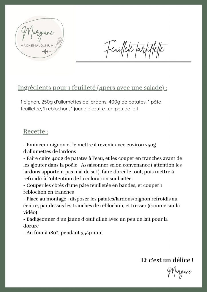 🧀  Je vous avoue que ce n’est pas une de mes recettes les plus light. Mais elle est tellement simple et gourmande qu’on me pardonne de vous proposer ce feuilleté aux lardons, oignons, reblochon et pommes de terre : c’est une PEPITE !
