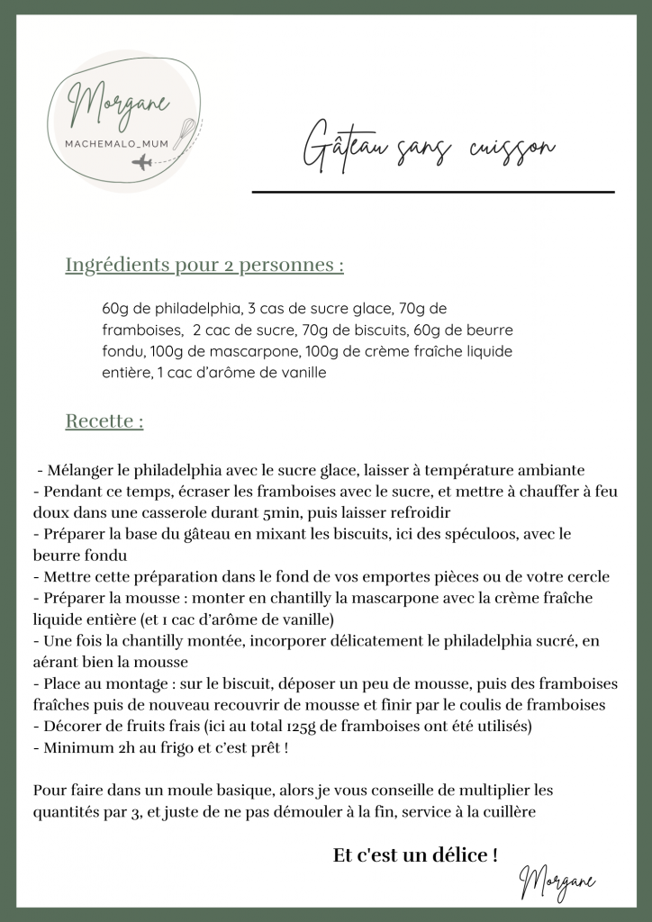 En plus de ça, il est vraiment super bon ! Ici il est à la framboise et au spéculos, mais on peut varier les plaisirs avec d’autres biscuits secs comme des petits beurres, ou d’autres fruits comme les exotiques, la base reste la même
